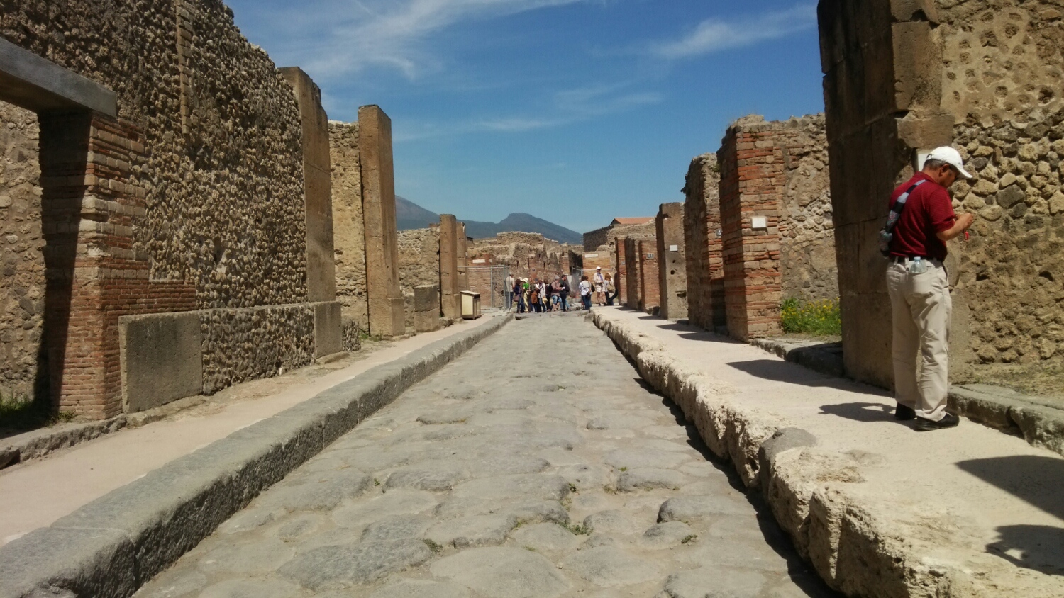 LOOK JTB フリープランで行ったイタリア その7 マイバスで行くナポリとポンペイ遺跡観光1日ツアー イタリア 2016年06月05日 0 イタリア旅行5日目はJTBのオプショナルツアーマイバスで行くナポリとポンペイ遺跡観光1日ツアーに参加しました。前日、宿泊するヴェネトパレスホテル にチェックインした後、マイバス社まで下見をしていたので徒歩15分程度で集合場所に到着しました。ホテルの朝食は7:00からでツアーの集合は6:45なのでブレックファーストボックスを6:00ピックアップで頼んでありました。マイバスの集合場所には6:30頃到着しましたがオフィスはあいていて中で座って待つことができてトイレも使用できました。待っている間に朝食も済ませましたが、クラッカーにジャム、梨のジュースと少し寂しい朝食でした。バスの中は快適、電波の強弱はありましたがWi-Fiも使うことができました。出発後1時間30分程度で休憩場所のドライブインに到着、ドライバーさんの休憩が法律で決められているとのことで、ちょうど30分の休憩時間があったので、クラッカーの朝食では物足らなかったのでこちらでパニーニやサンドイッチの朝ごはんを食べました。さらに1時間程度でナポリの港に到着し青の洞窟ツアー参加の10名程度のお客さんとローマから一緒に乗ってきてくれたガイドさんが下車して代わりに、ポンペイツアーについて行ってくれる日本語が堪能なイタリア人のガイドさんが乗ってきました。ここから1時間もかからずにポンペイ遺跡に到着しました。私たち4人ともう一組のカップル計6名のゆったりしたツアーで、ガイドさんから詳しく説明を受けながら遺跡を巡りました。前回来たときは友人と二人の個人旅行だったので、ガイドブックを参考程度にただ歩き回っただけでしたが、見どころを押さえた解説を聞きながら、紀元79年、弥生時代の日本とは比べ物にならない古代ローマの文明が一瞬にして火山灰に埋もれた歴史を感じながら歩くことができました。 遺跡には火山灰で燃えたり押しつぶされたりして屋根はありません。馬車などの轍が残っている場所もあります。噴火したヴェスヴィオ山。これは噴火の際にできた新山で隣に噴火した低い山がありました。紀元79年噴火の前紀元62年に大地震があったそうです。次の噴火も近いのではないかと言われているそうです。火山も地震も多い日本からすると、他人ごとではありません。当時の別荘秘儀荘へは門をでて10分ほど歩きました。1900年以上前のものとは思えないフレスコ画が綺麗な状態で残っていました。 ポンペイ遺跡を後にしてバスですぐのレストランで昼食をいただきました。団体客が多く訪れていましたが、メインがパスタとピザと選べます。どちらも美味しかったです。13:00すぎと朝が早いわりに遅めの時間になったので、朝の休憩場所で朝食を食べておいてよかった 食事のあとオメガ工場に立ち寄り、ナポリの港へ。カプリ島ツアーの高速船を待ちながら港で30分程度フリータイムがありました。途中、土産店で休憩してローマにもどったのはほぼ予定通り20時前に到着しました。といってもまだ明るかったので、歩いてホテルに戻りました。1日たっぷり充実したツアーを満喫しました。 [0回]
