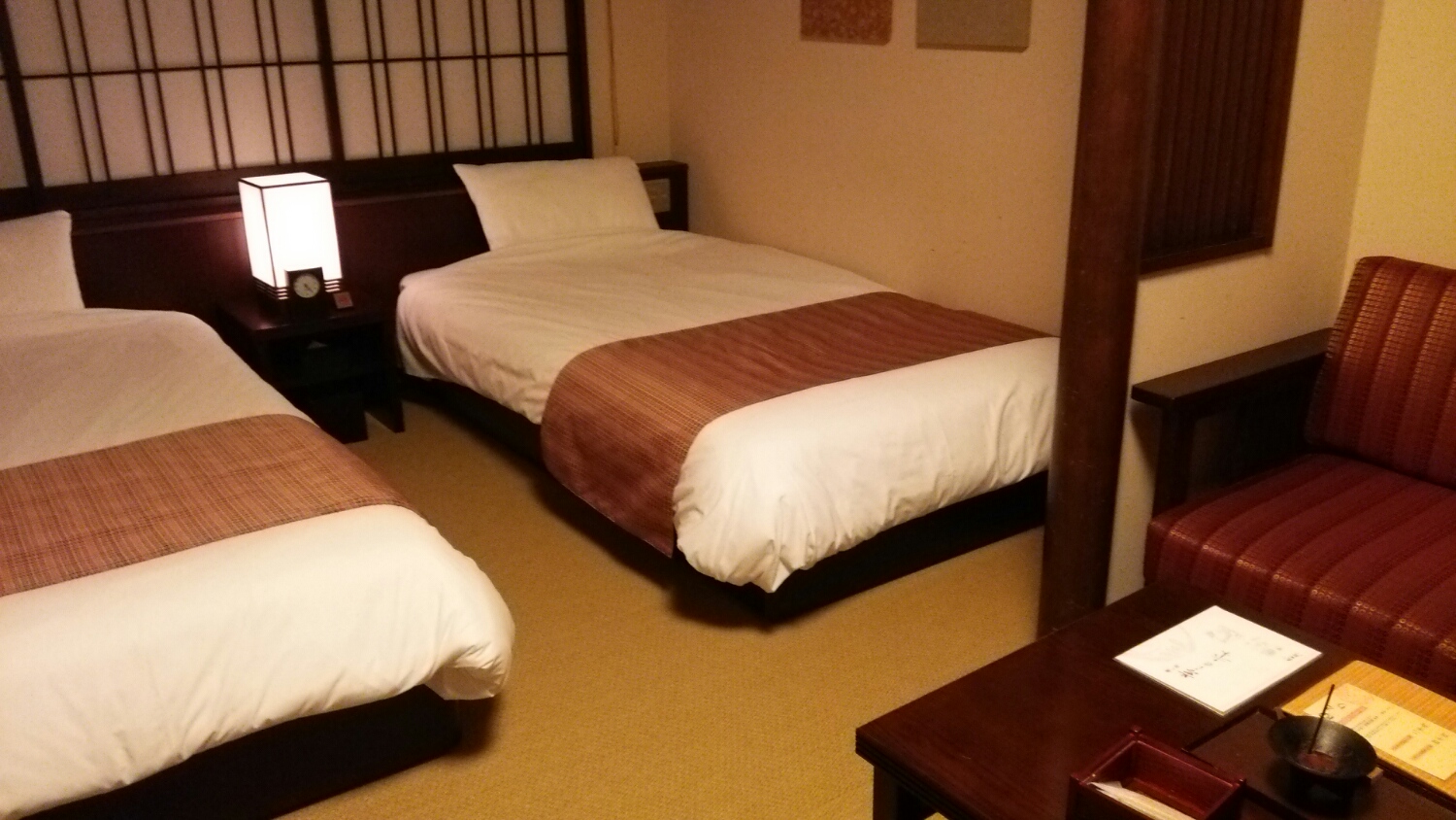 株主優待券を使った京都嵐山花伝抄 国内旅行 2015年12月27日 0 旅行会社に勤めている頃は、社員優待などでお値打ちに、宿泊できる機会が多かったのですが、会社を辞めてしまい利用できなくなりました。そこで、目をつけたのが、共立メンテナンス。前からあったらいいな、が実現できているお気に入りのホテルチェーンでした。100株を買い、今では4倍以上の金額になり、さらに年に二回グループならどこでも使える株主優待券3000円とグループのリゾートホテルや温泉旅館がお得な料金で泊まることができる優待クーポンが貰えます。そのクーポンを使って、お気に入りの京都嵐山花抄に5回目のお泊まりに、行ってきました。 畳を足袋靴下で歩く館内、夕食は飲み放題とおばんざい、天ぷらの食べ放題、雰囲気のある大浴場と5つの無料貸しきり風呂、湯上がりのアイスやヨーグルトドリンクのサービス、夜食のラーメンに朝のコーヒーサービスと無料の嬉しいサービスが満載です。できるなら3時にチェックインして、11時のチェックアウトまで、のんびり過ごしたいお宿です。オンシーズンはお高いですが、オフにはお値打ちになり、株主優待価格で 12000 円×2名-3000円の株主優待券+1000円の駐車場+入湯税150円×2名 合計二人で22,300円 夕食この日は冬至でしたが特に意識した食事ではなくほぼいつもと同じ。食事開始時に飲み放題の飲み物を届かないとクレームが多かったのか乾杯用の小瓶のビールとウーロン茶が置いてありました。てんぷらとおばんざいはテーブルオーダーの食べ放題ですが、そんなには食べられません。団体用の宴会場はなく個人のお客様が中心で、飲み放題やオーダーバイキングの注文にスタッフが追いついていない感はありますが、満腹でほろ酔いになるのでご機嫌になります。 朝食 和か洋を前日に選びます。基本のお膳+バイキングメニューです。わらびもちのデザートが美味しいです。 貸切風呂はランプが消えたら使用できます。 お部屋は畳にベット。そんなに広くはありませんが二人なら問題なし。外国人の方も好きそうなお部屋です。 朝のコーヒーもうれしいサービスです。 [0回]PR