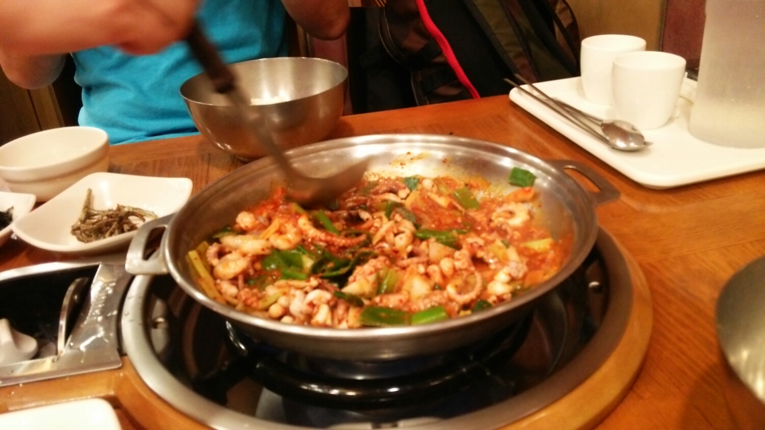 ピーチで行った釜山海雲台グルメ2 韓国 2015年10月17日 0 2日目の夕食は海雲台駅からの帰り道ケミチブ 海雲台店でたことエビ甘辛鍋をいただきました。ファーストフードのようなお店は明るく入りやすいです。鍋はおばちゃんが作ってくれました。白いご飯は1人前はサービス。おかわりは有料でした。ご飯と混ぜながら辛い、辛いといいながらもおいしくいただきました。鍋を2人前ご飯のおかわり、ビールで24000w 3日目の昼は海雲台セーブゾーンの裏手の通りにある元祖ハルメクッパでソコギクッパをいただきました。お野菜たっぷりで、そんなにお腹がすいてなかったのですが、ペロリと食べられるやさしい味でした。 [0回]PR
