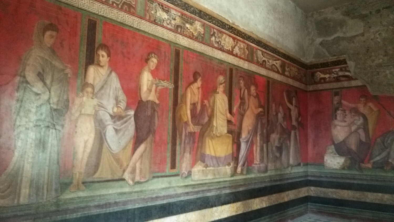 LOOK JTB フリープランで行ったイタリア その7 マイバスで行くナポリとポンペイ遺跡観光1日ツアー イタリア 2016年06月05日 0 イタリア旅行5日目はJTBのオプショナルツアーマイバスで行くナポリとポンペイ遺跡観光1日ツアーに参加しました。前日、宿泊するヴェネトパレスホテル にチェックインした後、マイバス社まで下見をしていたので徒歩15分程度で集合場所に到着しました。ホテルの朝食は7:00からでツアーの集合は6:45なのでブレックファーストボックスを6:00ピックアップで頼んでありました。マイバスの集合場所には6:30頃到着しましたがオフィスはあいていて中で座って待つことができてトイレも使用できました。待っている間に朝食も済ませましたが、クラッカーにジャム、梨のジュースと少し寂しい朝食でした。バスの中は快適、電波の強弱はありましたがWi-Fiも使うことができました。出発後1時間30分程度で休憩場所のドライブインに到着、ドライバーさんの休憩が法律で決められているとのことで、ちょうど30分の休憩時間があったので、クラッカーの朝食では物足らなかったのでこちらでパニーニやサンドイッチの朝ごはんを食べました。さらに1時間程度でナポリの港に到着し青の洞窟ツアー参加の10名程度のお客さんとローマから一緒に乗ってきてくれたガイドさんが下車して代わりに、ポンペイツアーについて行ってくれる日本語が堪能なイタリア人のガイドさんが乗ってきました。ここから1時間もかからずにポンペイ遺跡に到着しました。私たち4人ともう一組のカップル計6名のゆったりしたツアーで、ガイドさんから詳しく説明を受けながら遺跡を巡りました。前回来たときは友人と二人の個人旅行だったので、ガイドブックを参考程度にただ歩き回っただけでしたが、見どころを押さえた解説を聞きながら、紀元79年、弥生時代の日本とは比べ物にならない古代ローマの文明が一瞬にして火山灰に埋もれた歴史を感じながら歩くことができました。 遺跡には火山灰で燃えたり押しつぶされたりして屋根はありません。馬車などの轍が残っている場所もあります。噴火したヴェスヴィオ山。これは噴火の際にできた新山で隣に噴火した低い山がありました。紀元79年噴火の前紀元62年に大地震があったそうです。次の噴火も近いのではないかと言われているそうです。火山も地震も多い日本からすると、他人ごとではありません。当時の別荘秘儀荘へは門をでて10分ほど歩きました。1900年以上前のものとは思えないフレスコ画が綺麗な状態で残っていました。 ポンペイ遺跡を後にしてバスですぐのレストランで昼食をいただきました。団体客が多く訪れていましたが、メインがパスタとピザと選べます。どちらも美味しかったです。13:00すぎと朝が早いわりに遅めの時間になったので、朝の休憩場所で朝食を食べておいてよかった 食事のあとオメガ工場に立ち寄り、ナポリの港へ。カプリ島ツアーの高速船を待ちながら港で30分程度フリータイムがありました。途中、土産店で休憩してローマにもどったのはほぼ予定通り20時前に到着しました。といってもまだ明るかったので、歩いてホテルに戻りました。1日たっぷり充実したツアーを満喫しました。 [0回]