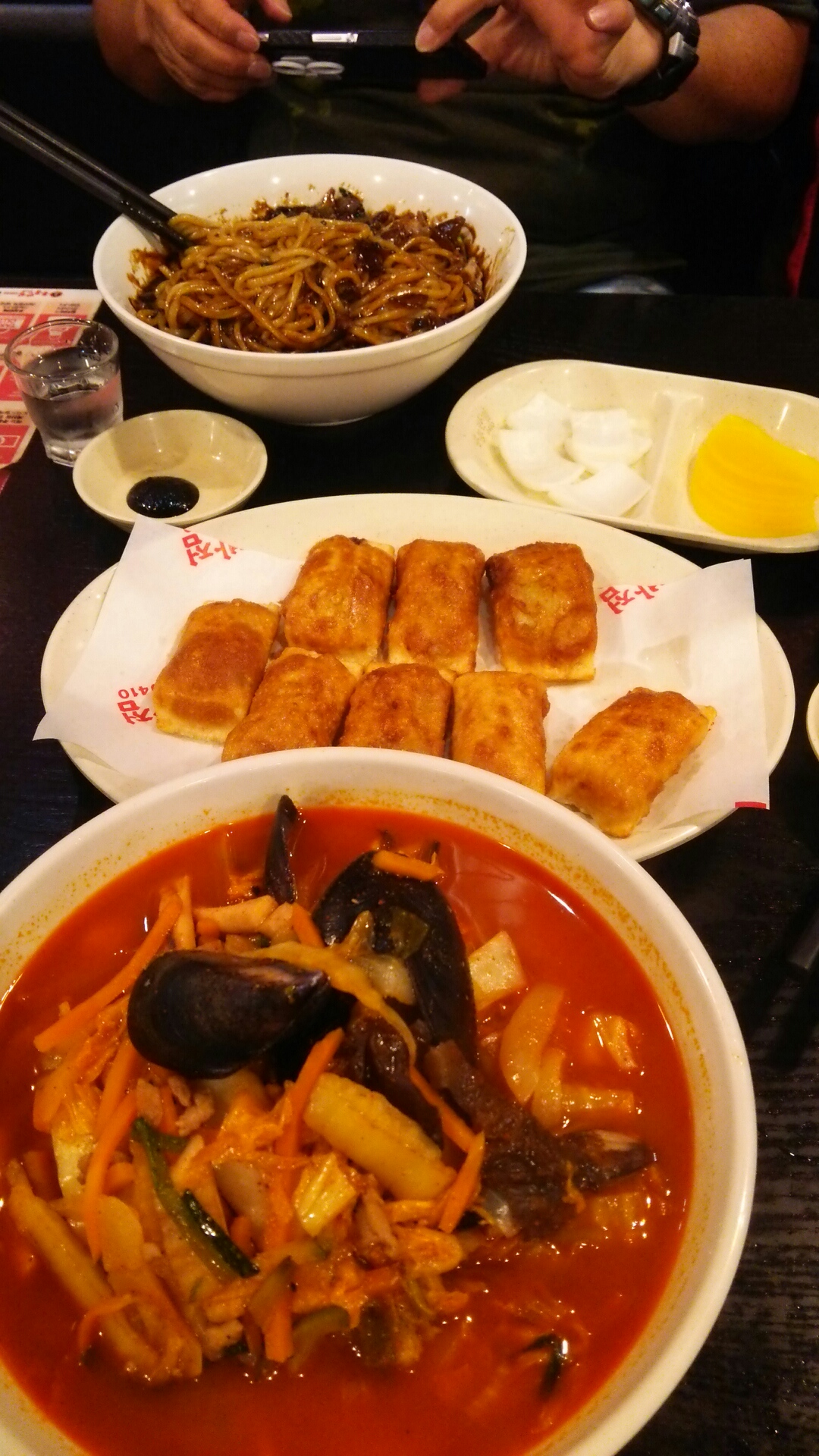 ピーチで行った海雲台グルメ3 韓国 2015年10月19日 0 9月22日(火)3日目の夜はフグを食べに行こうと思っていました。ところが、相方はジャジャ麺のポスターが貼ってあるお店を通るたびに食べたい主張が激しく、ふぐより絶対ジャジャ麺と言い張るので、そのお店に入ってみることにしました。ジャジャ麺と辛いちゃんぽん麺、餃子、韓国焼酎を頼みました。二人で17000wだったと思います。家に帰ってから調べたら香港飯店0410PLUS+というお店のようです。地元の人で流行っていました。相方は人生初のジャジャ麺に大満足ちゃんぽんも餃子もおいしかったです。 最終日の朝食は、ビーチを散歩のあと「済州家」であわび粥をいただきました。鮑の食感と海の香りがお口に広がります。お値段はお高めですが、おかずもおいしかったです。 お店を出たら隣は「元祖アワビ粥」でした。 [0回]
